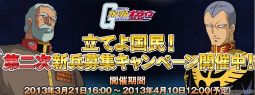 由NAMCO BANDAI ONLINE開發、營運的Windows專用網路遊戲「機動戰士鋼彈ONLINE」從今天起,開始期間限定的「第二次新兵募集活動」。
