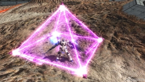 ▲特殊格鬥武裝,以射出薔薇型的感應砲在敵人附近展開力場,一旦敵人接觸到力場就會陷入麻痺的「精神感應干擾力場」。如果打中NT-D狀態的獨角獸鋼彈的話,就和原作同様有強制解除NT-D的效果。