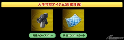 ▲襲撃戰活動中可以獲得「設計圖」、「色彩噴劑」、「徽章貼紙」。