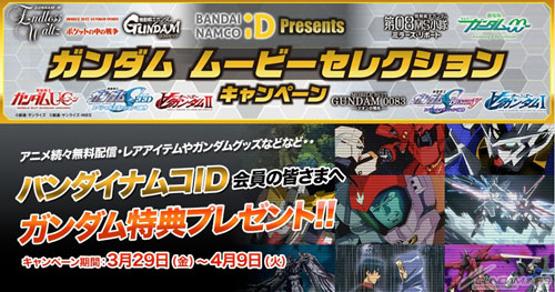 活動指定對象包含「機動戰士鋼彈ONLINE」會員在內,所有NAMCO BANDAI ID會員除了可以在BANDAI CHANNEL上免費收看鋼彈系列10部作品之外,還能夠獲得9款人氣鋼彈遊戲的稀有道具等,滿載豪華特典的豐富內容。