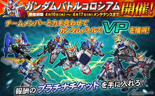 另外從今天4月10日(三)起到4月17日(三)為止的限定期間內,舉辦遊戲內活動「鋼彈戰鬥競技場」。