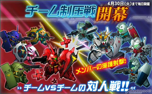 NAMCO BANDAI ONLINE在「Yahoo!遊戲」上提供中的免基本費網頁遊戲「SD GUNDAM OPERATIONS」,將在今天4月24日(三)正午展開實裝新報酬系統的「小隊壓制戰」,而「鋼彈戰鬥競技場」與「獲得PP增量活動」、「11連轉蛋保證★3以上機體一台活動」同時開始。