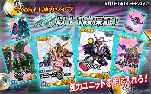 活動期間中,只要轉「11連王牌機體轉蛋」,一定能夠獲得「★3」以上的機體1台。這是獲得強力機體的大好機會,請務必挑戰看看。活動期間只到5月1日(三)為止。