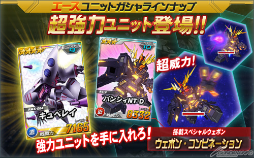 同樣從今天正午開始,王牌機體轉蛋中追加「★4 丘貝雷」與「★3 報喪女妖NT-D」等強力機體。