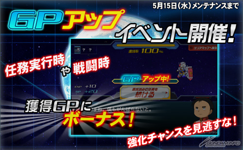 並且同時舉辦「獲得GP增量活動」,在「鋼彈戰鬥競技場」舉辦期間中,進行「任務」時能獲得的「GP」將會增加。