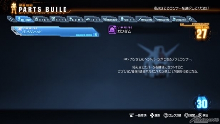 ▲體驗版中有許多★數不同的鋼彈頭零件狀況下,將會獲得以最多★數轉成的鋼彈頭框架1個。