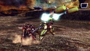 ▲特殊格鬥武裝是在跳躍後變形成MA型態的「急速變形」。發動的時候持續維持搖桿的方向,會在變形完成後朝著搖桿的方向進行衝刺。