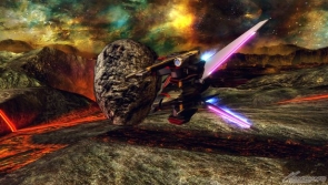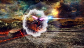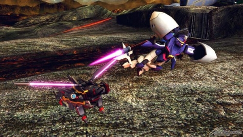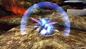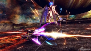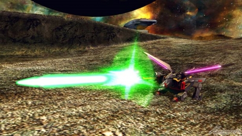 ▲特殊射擊武裝是呼叫「混沌鋼彈」出來,從機動兵裝莢艙發射出飛彈進行攻擊。還可操縱搖桿改變機動兵裝莢艙的位置。