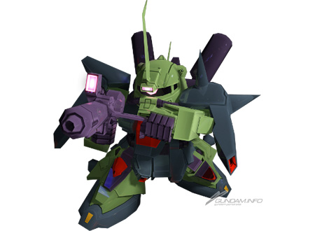 | 【武裝(武裝變更前)】 武器1:― 武器2:飛彈發射器 武器3:無線式手臂光束砲 特殊攻擊:全彈發射型 【技能】 技能1:機動性上升 技能2:宇宙之狼 |