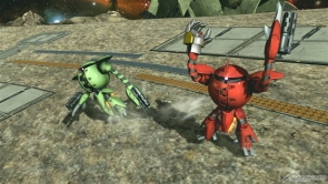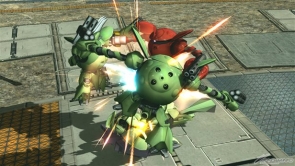 只是,只要其中一方機體的耐久值歸零時就等於被擊破,而會消耗掉2000 COST,要盡量找到敵方的空隙,確實的替換來戰鬥是這台機體的關鍵。