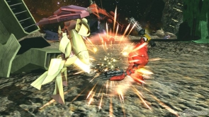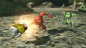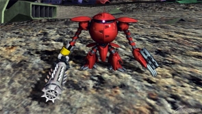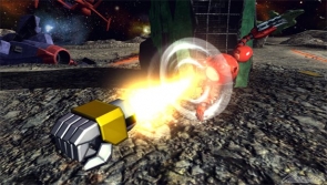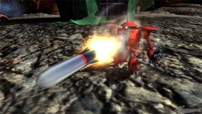 ▲主射擊是從腹部發射「飛彈」2發連射(左),集氣後的主射擊,會變成跳起來後發射附著在右手臂的沃多姆拳頭「火箭飛拳」(右)。