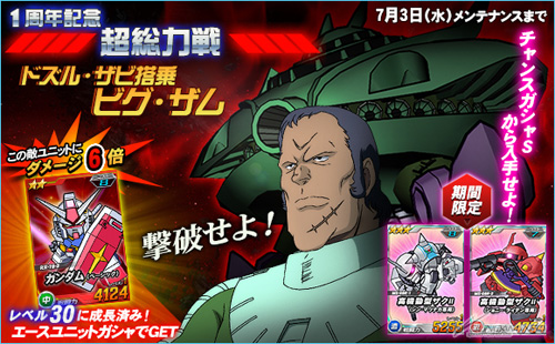 NAMCO BANDAI ONLINE在「Yahoo!遊戲」上提供中的免基本費網頁遊戲「SD GUNDAM OPERATIONS」,目前正好評舉辦中的「1周年紀念超總力戰」從今天6月26日(三)起「德茲爾搭乘的畢格・薩姆」將會登場。