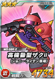 (左)超總力戰機會轉蛋限定「高機動型薩克II(強尼・萊丁專用)」