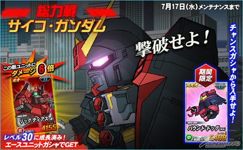 今天7月3日(三)起到7月17日(三)為止的限定期間內,總力戰中「精神感應型鋼彈」登場。期間中進行任務的時候,有機會遭遇「精神感應型鋼彈」。