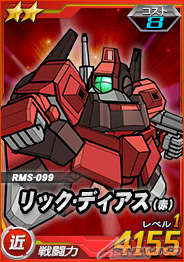 打倒「精神感應型鋼彈」後可以抽的機會轉蛋,除了有機會獲得「彈跳犬(MA)」以外,在王牌機體轉蛋中追加可以對「精神感應型鋼彈」發揮6倍攻擊力的「里克‧迪亞斯(紅)」。