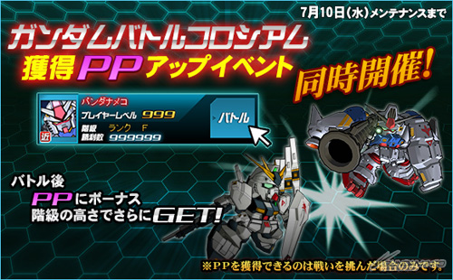 同樣在今天7月3日(三)開始到7月10日(三)為止的限定期間內,舉辦「鋼彈對戰競技場」、以及「獲得PP增量活動」。