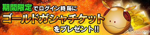 這次舉辦的活動是從今天8月12日(一)開始到8月21日(三)為止,只要在活動期間內只要登入遊戲,就一定可以獲得一台「Re-GZ特裝型」;除外,活動期間內只要每天登入,一天都會贈送一張一定可以獲得「R」級以上MS的「黃金轉蛋票」,最多可以獲得10張。