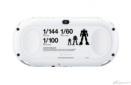 同梱的新型PlayStation Vita主機是以「白色」的本體色為底,在上面加上了象徵本作挑戰巨大鋼彈、表現出「鋼彈模型比例感」的強力設計。此外,同捆的原創配色鋼彈模型,就跟可以自由改變機體色的遊戲性一樣,「HGUC 薩克II」是採用根鋼彈一樣的紅藍白三色,是只有這邊才能拿到限定版。