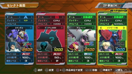 ▲「分歧戰鬥」中可以依據自己的玩法風格和本領來選擇關卡。且我方的CPU會減少一半的COST參戰,所以戰鬥時要特別注意戰力表的消耗。