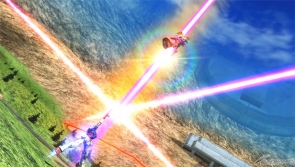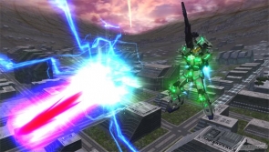 ▲集氣射擊是支援的翠綠暴風鋼彈使用雷射照射進行援護。