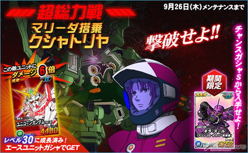 NAMCO BANDAI ONLINE在「Yahoo!遊戲」上提供中的免基本費網頁遊戲「SD GUNDAM OPERATIONS」從今天9月18日(三)起,「瑪莉妲搭乘的剎帝利」會在超總力戰中登場。