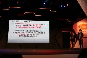 首先登場的是,負責「激戰任務」的NAMCO BANDAI GAMES桑原製作人,以及「鐵拳 Revolution」的原田企劃總監,介紹了F2P類型的商業模式以及今後將以海外為中心的業務拓展。