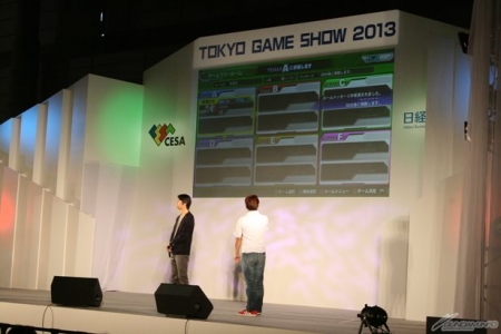 現場演唱前半結束後,在熾熱氣氛的舞台上登場的是NAMCO BANDAI GAMES的小菅製作人和NAMCO BANDAI STUDIO的大久保制作人。