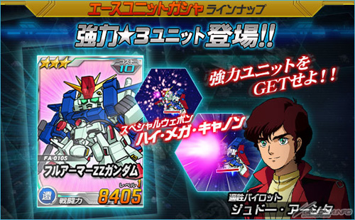 王牌機體轉蛋同樣從今天起追加「★3 全裝甲ΖΖ鋼彈」和「★3伊弗利特改」、「★3 地獄獵犬巴庫」等等強力機體。