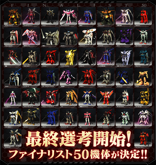 與現正熱映中的『鋼彈創鬥者』連動舉行中的「鋼彈創鬥者 原創MS選手權」。其中在「鋼彈破壞者組」之中入圍最終評選的50架機體,將於本日起在鋼彈遊戲官方門戶網站「GUNDAM PERFECT GAMES」公開。