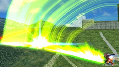 ▲特殊格鬥武裝「特殊移動」是迴旋移動。根據搖桿輸入方向不同,會改變移動方向,搖桿往右就往右・往左就往左,不操作搖桿則是往上,搖感向前則是往前方移動。在移動中按下格鬥劍會發動橫向的斬擊。