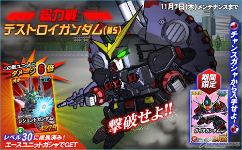 同樣從今天起到11月7日(四)止的限定期間內,「破滅鋼彈(MS)」將在總力戰中登場。在期間中進行任務的時候,有機會遭遇「破滅鋼彈(MS)」。