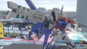 真・飛鳥駕駛的命運鋼彈降臨在模型場景中!擁有高攻擊力的亞隆戴特裝在具有優秀機動力的命運鋼彈上,可以發揮出如同鬼神般強大的威力。且如果發動本作中的必殺技「超級增壓」,更能夠提高能力一段時間。給予敵人奮力一擊吧。