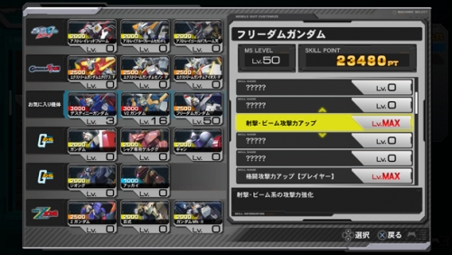 ▲每台機體可以在任務中累積獲得的技能點數,挑戰各種任務來獲得技能,並使用點數來強化技能等級吧。