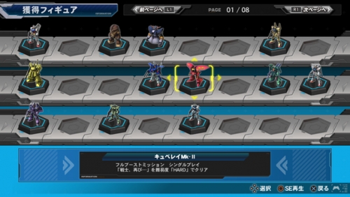 ▲在「FULL BOOST MISSION」中獲得的MS公仔可以登錄在畫廊中。除了可操縱機體以外,還有許多其他的公仔,目標是全部收集完成。