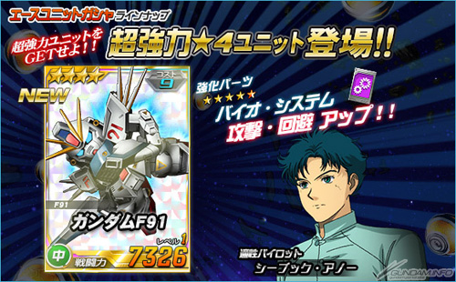 此外在王牌機體轉蛋中,將新追加「★4 報喪女妖(NT-D)」等3台超強力機體,並同時舉辦「超總力戰機會轉蛋次數倍增活動」。