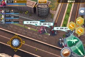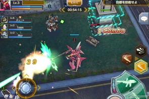 ▲在動作模式中,最多可以讓4名玩家連線一起戰鬥。戰鬥採用的是「鋼彈」遊戲中很少見的俯瞰視點。玩家能夠操縱性能不同的多樣機體來進行戰鬥。透過攻擊、噴射、技能等各種豐富的動作來贏得勝利。