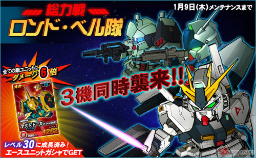從今日起到2014年1月9日(四)止的限定期間內,「隆德・貝爾隊」將在總力戰中登場。在活動期間中執行任務時,就有機會遇到喔。