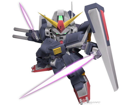 『機動戰士鋼彈SEED DESTINY』中登場的MS。具有近接格鬥、光束系射撃、實彈系射撃等平衡良好的武器。由於技能1「攻撃力上升」和技能2「防禦力上升」這兩個技能,都僅有積蓄SP值以外的發動條件,更容易發揮出機體全部的性能。