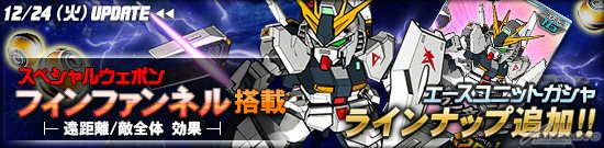 同樣從今天起,在王牌機體轉蛋中追加有特殊武裝的強力機體「★3 ν鋼彈」。請親自體會可以攻擊敵方全體的「翼狀感應砲」威力吧。