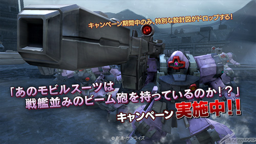 NAMCO BANDAI GAMES好評提供中的PS3専用網路戰鬥動作遊戲「機動戰士鋼彈 激戰任務」,將在今天1月16日(四)起開始舉辦「那架MS有和戰艦同等級的光束砲嗎!?」活動。