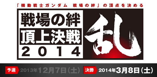 「戰場之絆 頂上決戰~亂~2014」是決定圓頂螢幕式戰術小隊對戰遊戲「機動戰士剛彈 戰場之絆」這一款熱門大型機台電玩頂尖玩家的大賽。