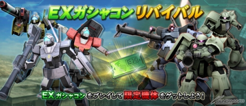 活動的詳細資訊請到「機動戰士鋼彈ONLINE」官方網站的 「EX轉蛋復甦」特設頁面查看。