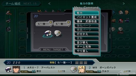 ▲小隊編成畫面可以執行駕駛員培育和機體改造、裝卸強化零件等各種操作。