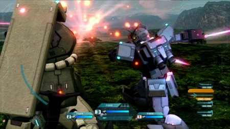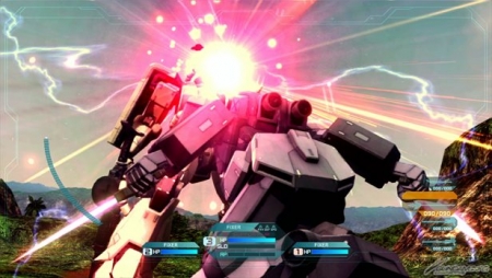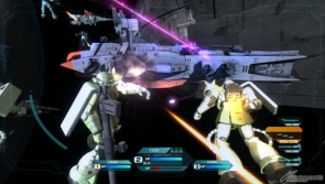 戰鬥是操作由三機MS的部隊來進行,而且可以隨時切換不同機體。可以根據任務性質分別使用性能各有不同的MS,由玩家來決定各種機體活用的辦法。透過簡單的操作就能輕快地展開動作並感受到爽快感的「高速動作」戰鬥系統,是本作自己將各種新的動作遊戲系統組合後,所催生的全新鋼彈動作遊戲。