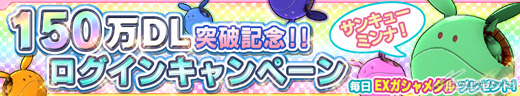 紀念下載次數突破150萬的「登入活動」是在活動期間中,每天登入遊戲1次就可以獲得3枚「EX轉蛋代幣」;「好友活動」則是在活動期間結束的時候,若是登錄好友超過一定人數,就可以獲得各種轉蛋代幣好禮。