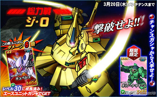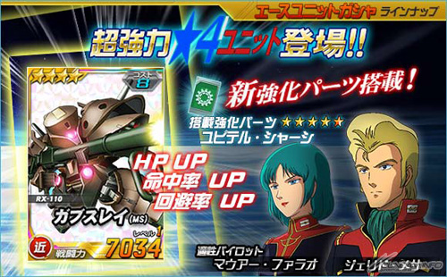 此外,除了「THE・O」從今天起在總力戰中登場之外,王牌機體轉蛋中追加「★4 加布斯雷(MS)」;而「鋼彈鬥技場」及「獲得PP上升活動」也開始了。
