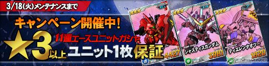 舉辦中的「連續11次轉蛋保證1枚★3機體活動」,只要在期間中抽11連王牌機體轉蛋的話,就一定可以得到1台★3的機體。