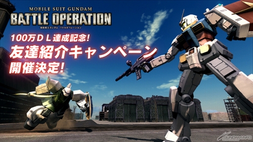 BANDAI NAMCO GAMES好評提供下載中的PS3專用網路戰鬥動作遊戲「機動戰士鋼彈 激戰任務」,為紀念日本下載人次突破100萬,「100萬下載突破!感謝活動」終於在今天3月13日(四)起開跑。