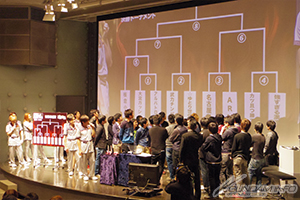 僅接著參賽隊伍陸續進場,隨著抽籤決定對戰對手,台上的氣氛也越趨緊張跟興奮。而板倉隊長居然抽中不用進行第一輪比賽的特別籤。可以仔細觀察其他隊伍的戰略和編成,非常的有力而讓隊員們非常興奮。