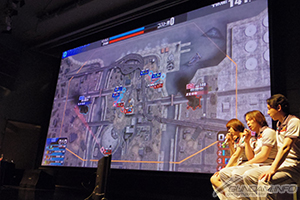 然後決賽終於開始。台上的螢幕會顯示地圖和駕駛艙內的影像來轉播激戰的狀況,現場都是觀賽者此起彼落的歡呼聲,各組的賽事也陸續進行。